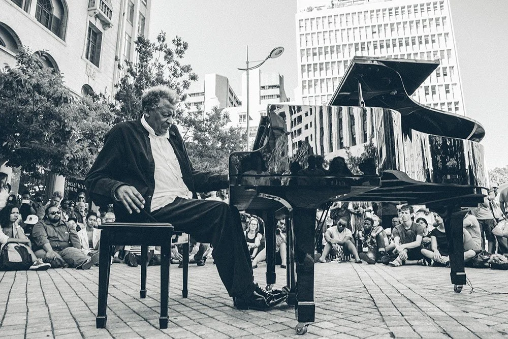 The pianist became known as Dollar Brand and in his youth was influenced by American jazz, township jive, and classical music, among other genres. To this day he blends the secular with the religious, the ancient with the contemporary, to form his own sound, which includes improvisation. The New York Times has described his work as a “musical middle-state”.