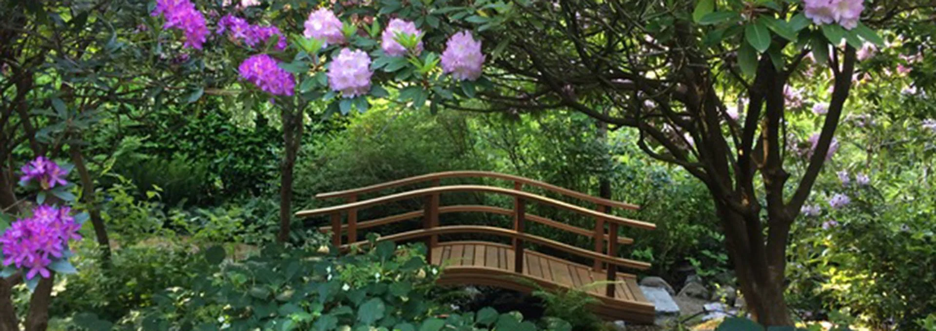 The setting is a West Vancouver garden built in the ’50s with steps leading down a granite rock, two streams, old-growth Douglas fir, native plants and shrubs, and perennial garden beds.