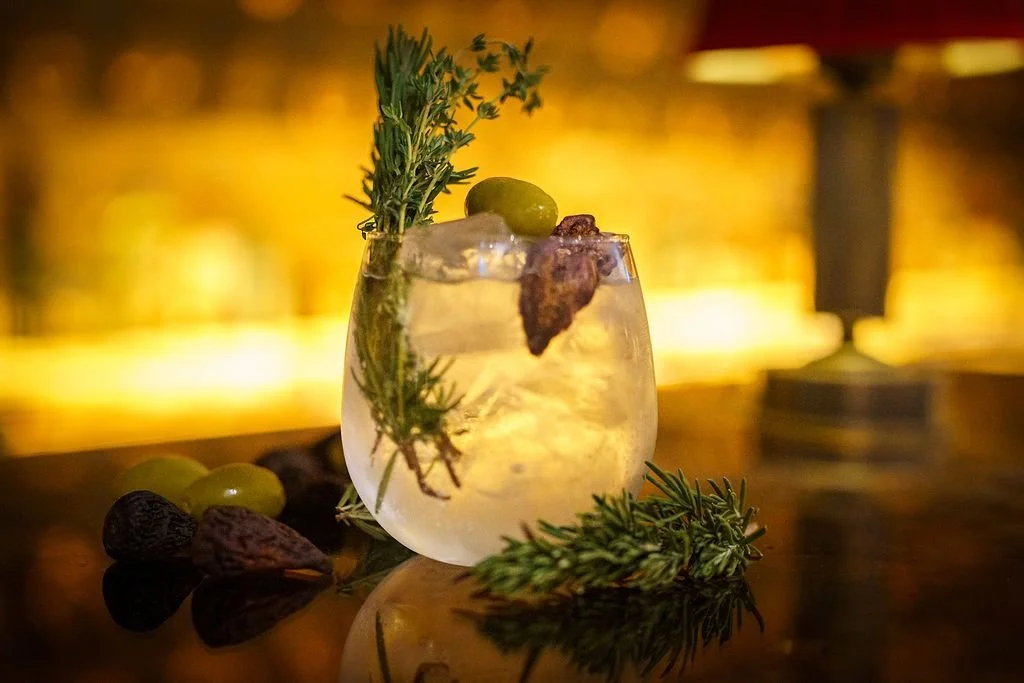 Behind the 42-foot bar—which has a reclaimed-teak frontage, an illuminated top, and backsplash of polished tiger-eye-blue onyx—operating partner Alex Black heads a drinks program of era-inspired cocktails with inventive flavours named after Kipling works. Man’s Red Flower, for instance, features saffron-infused gin; All One Vine incorporates smoked paprika; and the Anvil has cinnamon tincture.