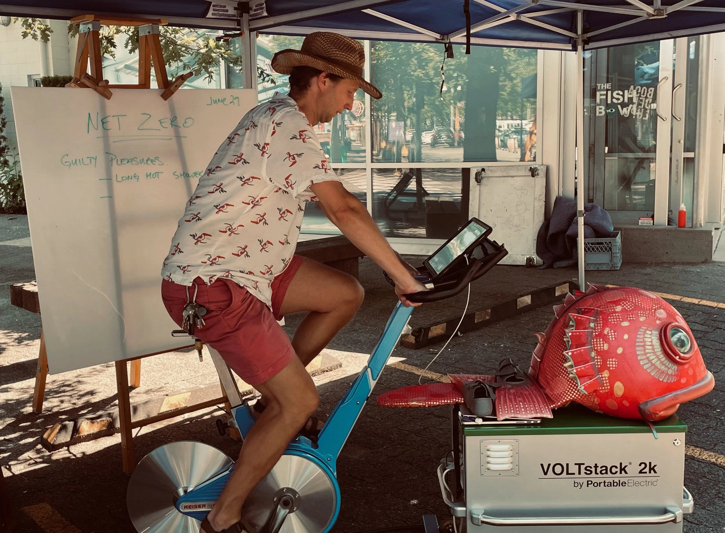 FROM JULY 8 to August 28, theatre innovators Boca del Lupo are inviting you to work off your guilt over our pending environmental disaster, and help them charge up their Granville Island storefront at the same time.