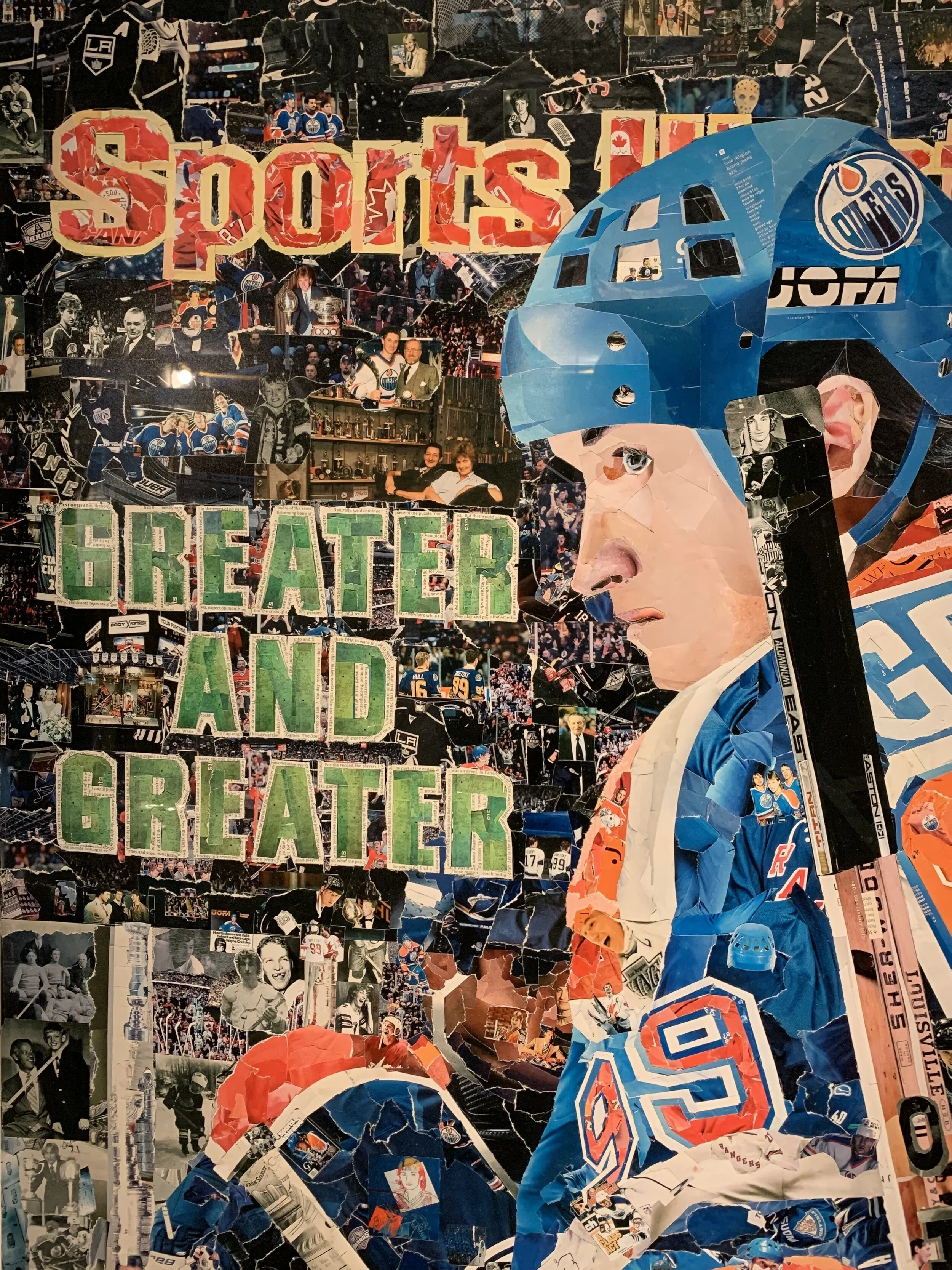 “I grew up in Edmonton, where Wayne Gretzky is a living god and someone I idolized as a kid. This medium [mixed-media/collage] affords the opportunity to highlight his incredible journey, broad experiences and accomplishments. I want this piece to honour an incredible individual who's had such a positive influence over so many lives.