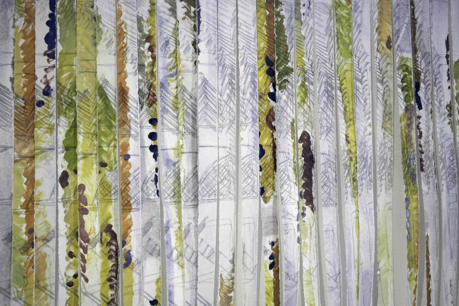 The 12-foot long piece is comprised of inch-wide print strips made using a combination of monoprinting and lithography.