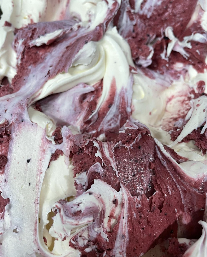 Gelato by James’s Crémé Gelato with a Frutti di Bosco swirl.