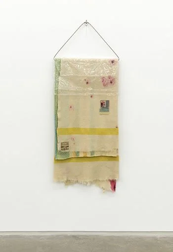 Subject to Change also includes her written reflections around her work with old blankets, collected from thrift stores and reimagined—sometimes drycleaned and sewn and embroidered to resemble abstract, colour-field paintings.