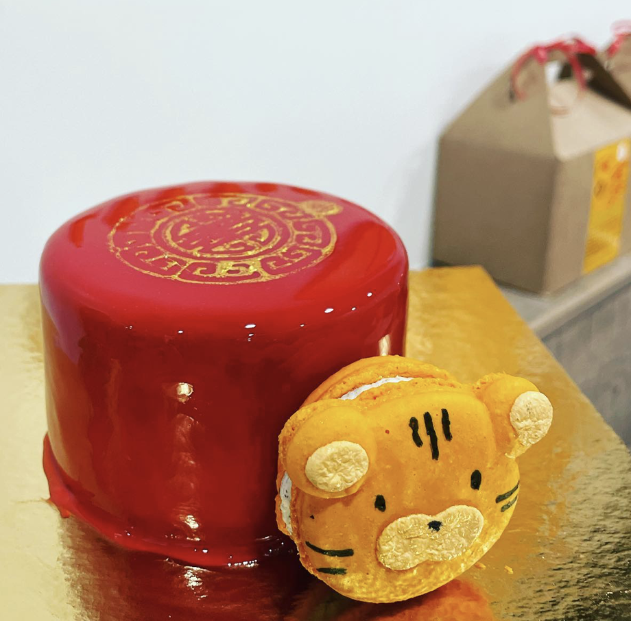 At Richmond’s Little Fox Bakehouse, chef Eric Ho is making all sorts of treats to celebrate. The Chinese New Year cookie box has red velvet cookies, black sesame butter cookies, sesame cookies, orange shortbread, and matcha orange linzer sandwich cookies), while the Tiger Macaron Box is filled with black sesame tiger macaron, orange macaron, and shortbread. He has also created a Year of the Tiger chocolate mousse cake with mandarin orange crémeux.