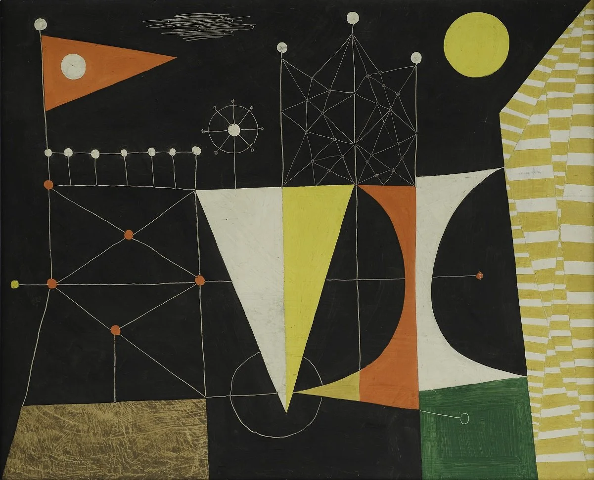 B.C. Binning, Untitled (Sketch for Night Regatta),1953-55, oil paint on board, 55.5 x 45.5 cm. Courtesy ofthe West Vancouver Art Museum