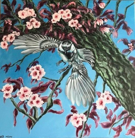 When the pandemic had us all hanging out at home for longer than we ever imagined, Assi looked to the birds in her garden as harbingers of hope. Those long days opened up a new subject matter for her, the artist using vivid colours and exquisite detail in her acrylic paintings to bring the creatures to life.