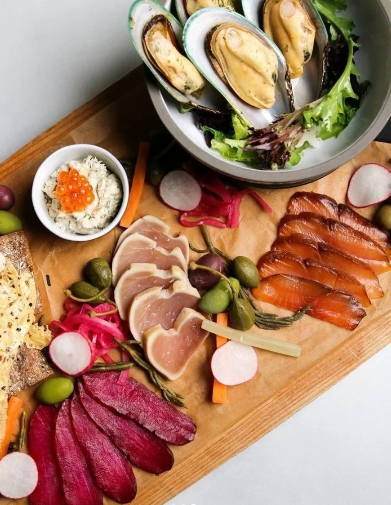 Wildlight’s pescatarian charcuterie board has house-made salmon pastrami, beet-cured ling cod, marinated Salt Spring Island Mussels, smoked albacore tataki, cod rillette, and pickled sea asparagus alongside warm olives, rye, poppadom, and nori crackers. Seared Hokkaido scallops come with indulgent truffle risotto; luscious miso koji Gindara sablefish is served with soba noodles, glazed baby bok choy, edamame, and dashi consommé. There’s tomahawk steak for two, Rossdown Farms chicken, Fraser Valley duck; and a burger of dry-aged Two Rivers Grind; then there are many vegan options (like “brisket” flatbread or crispy golden tempura oyster mushrooms with plant-based togarashi mayo spread, cabbage slaw, and butter pickles on house-made bread). Fresh rotating oysters, weekend brunch, and daily happy hour are among the other offerings.