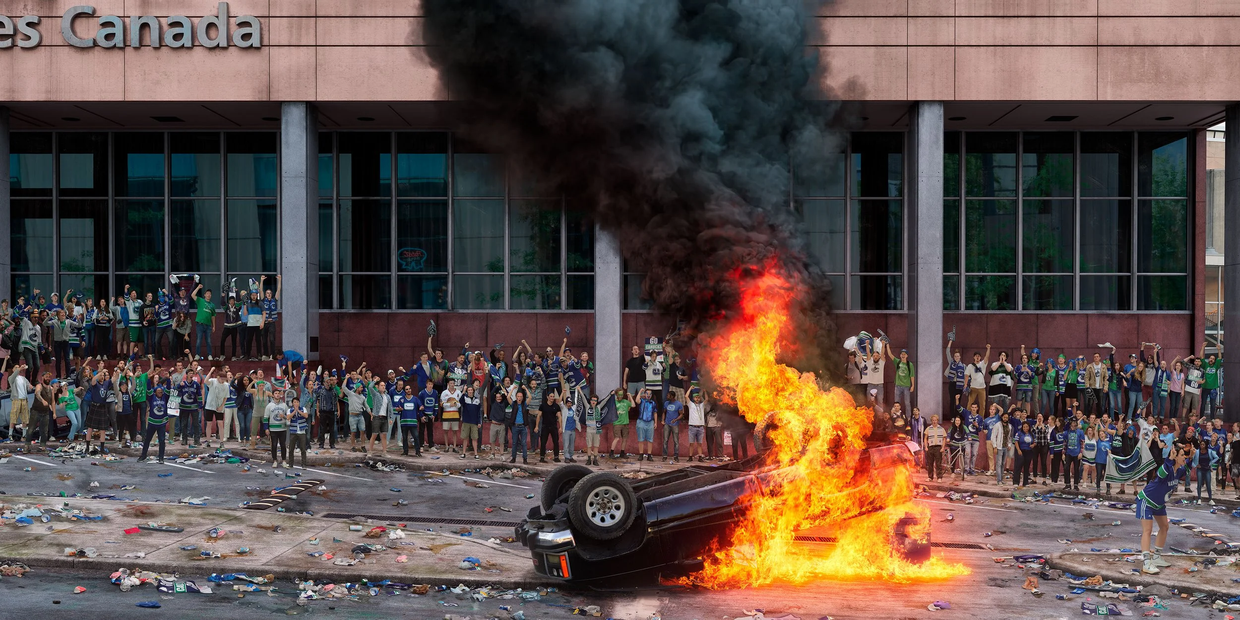 The scene is instantly recognizable to anyone from Vancouver. The Stanley Cup riots of 2011.