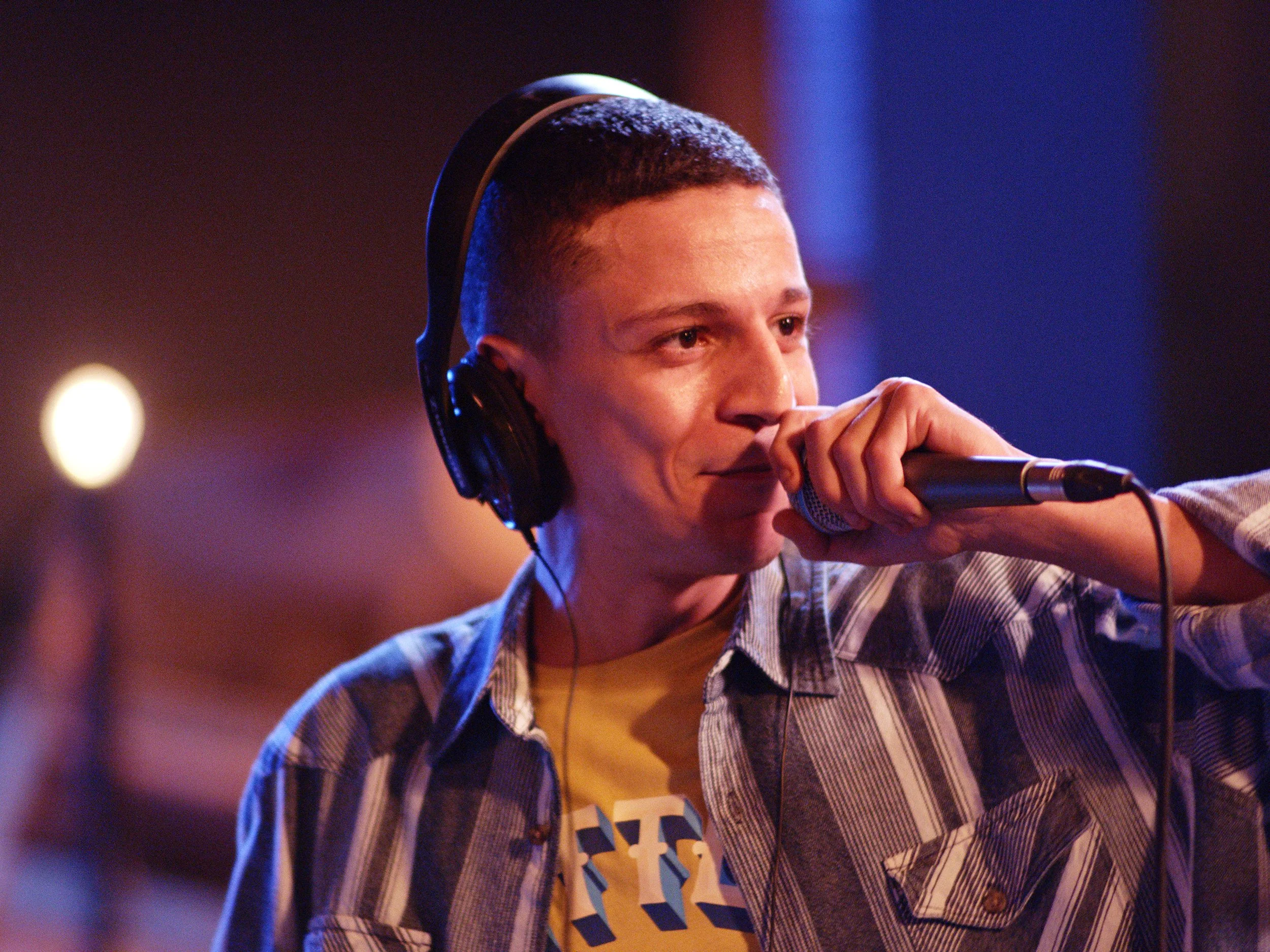 In the video installation, called ISDN, the two facing screens feature the rappers, in headphones, taking turns at the mike; when the London pair aren’t dropping rhymes, they’re rocking out to the raps pouring out of the Egyptian screen, and vice versa.