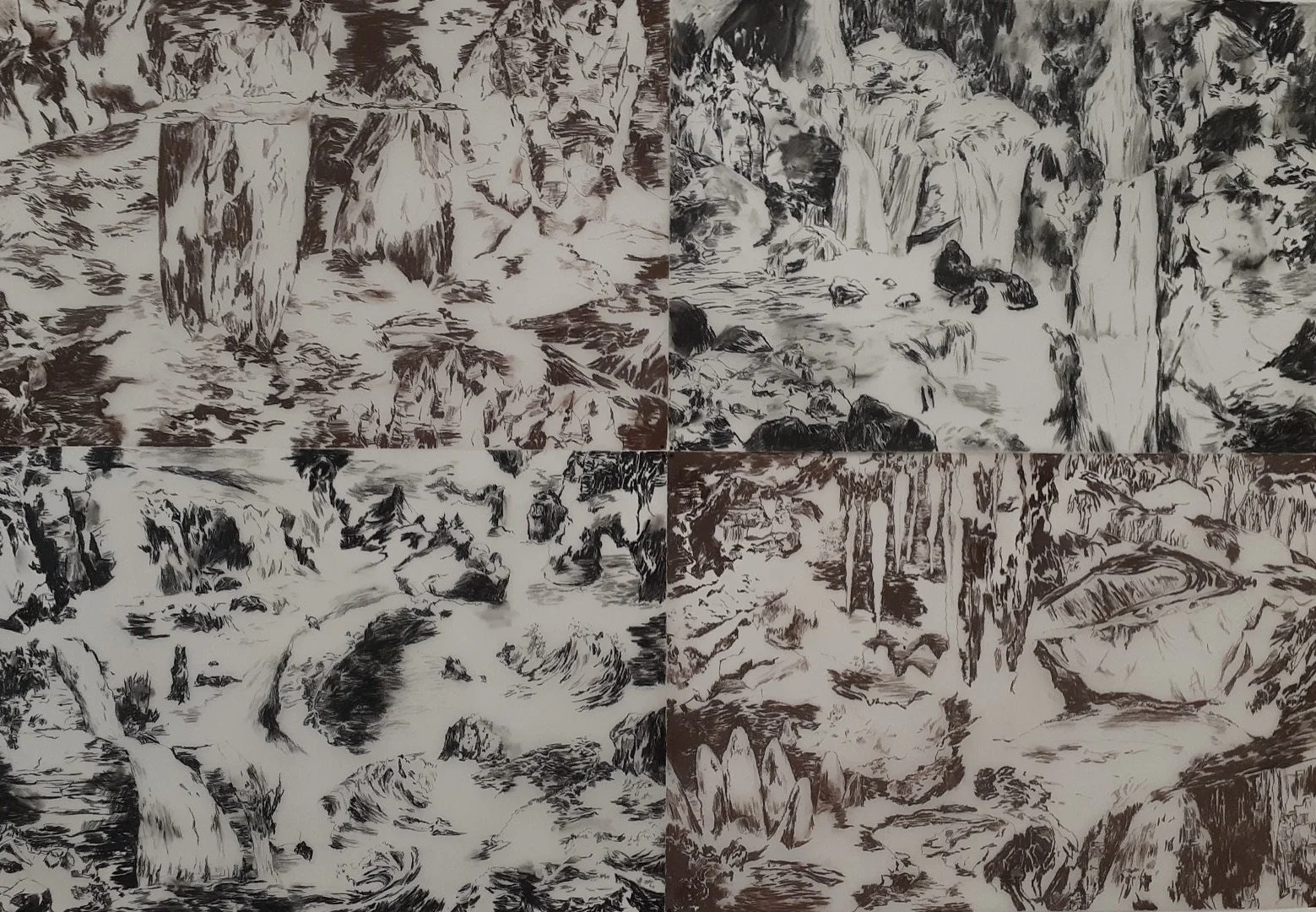 Lesley Garratt’s I Followed the Advice of Water (2019), Conté on vellum.