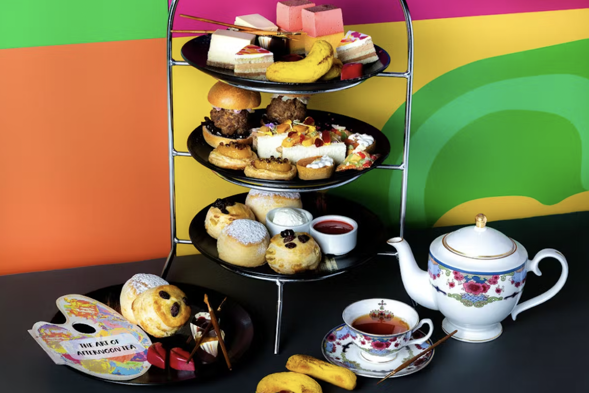 On the menu are items like Lips chocolate truffle, a nod to Salvador Dalí, and Blank Canvas, a white chocolate cheesecake with mango and raspberry “paints”, à la Jackson Pollock.