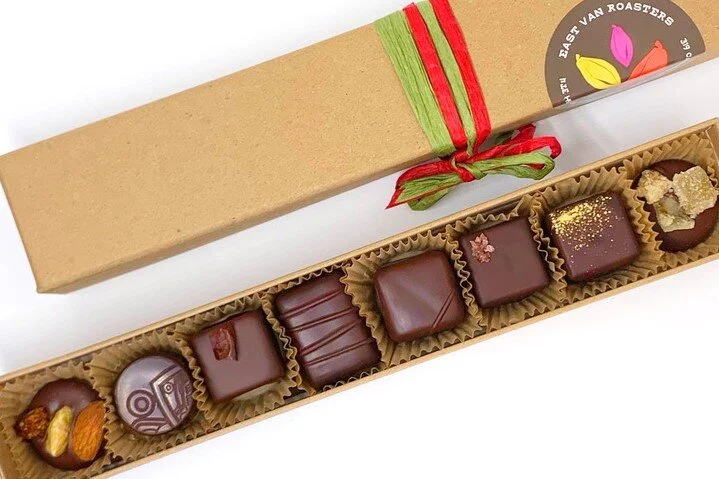Seasonal treats available for pick up, shipping, or delivery via Fresh Prep and Legend’s Haul include the Holiday Trilogy with Fireside (blood orange, pistachio, and cardamom in white chocolate), Gingerbread Toffee, and Mint Cookie chocolate bars; a 16-piece Holiday Confections Box (which includes the International Chocolate Awards-winning hazelnut caramel and cranberry spruce truffle); the crème caramel toasted white chocolate bar; and a four-piece vegan chocolate box. E-gift cards for future chocolate indulgences are also an option for a gift that gives back.