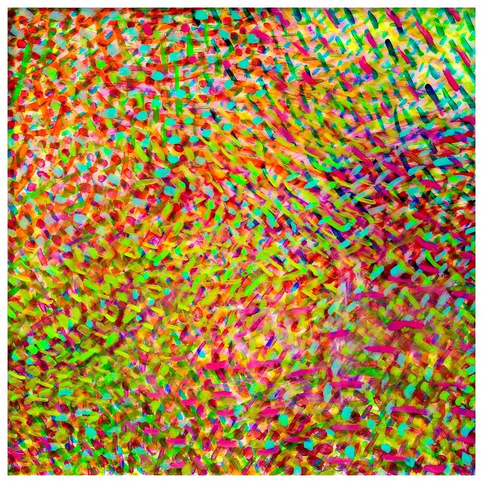 Tiko Kerr, Kinetic Typography, 48x48 in, acrylic paint on two layers of ply plexi.