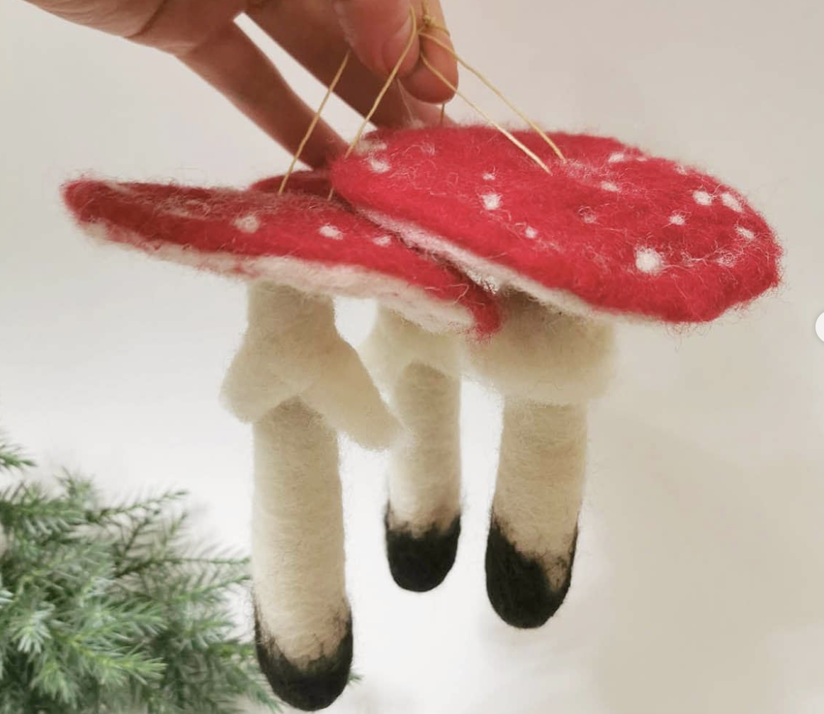 Warm and Drift’s needle-felted toadstool ornaments, at Toque.