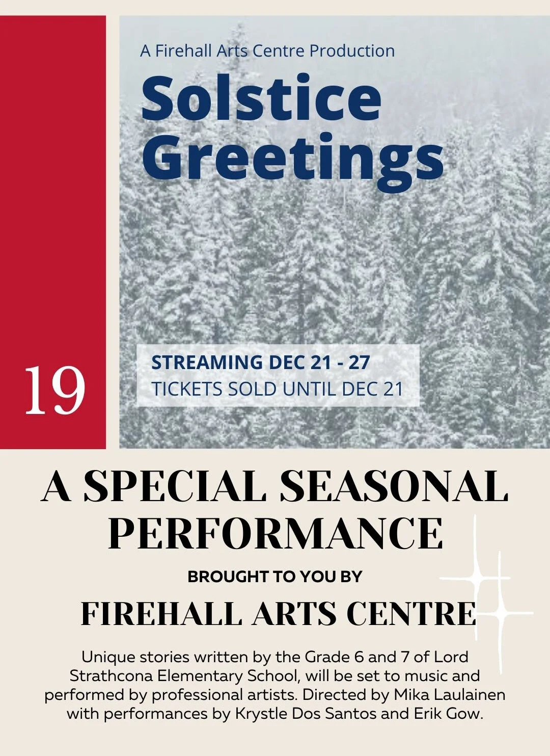 Follow our posts here, on Instagram, or on Facebook each day to check out a new spirit-lifting seasonal specialty brought to you by Vancouver's arts and culture scene.